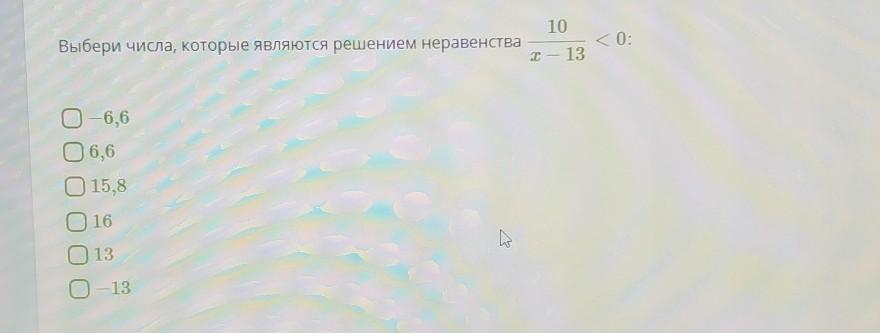 Все числа, которые меньше 13. То есть -6,6; 6,6;