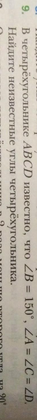 Сумма всех углов четырёхугольника равна 360° ⇒ ∠A+∠B+∠C+∠D=360° ⇒ 3∠A+150°=360° ⇒ ∠A=70°=∠C=∠D