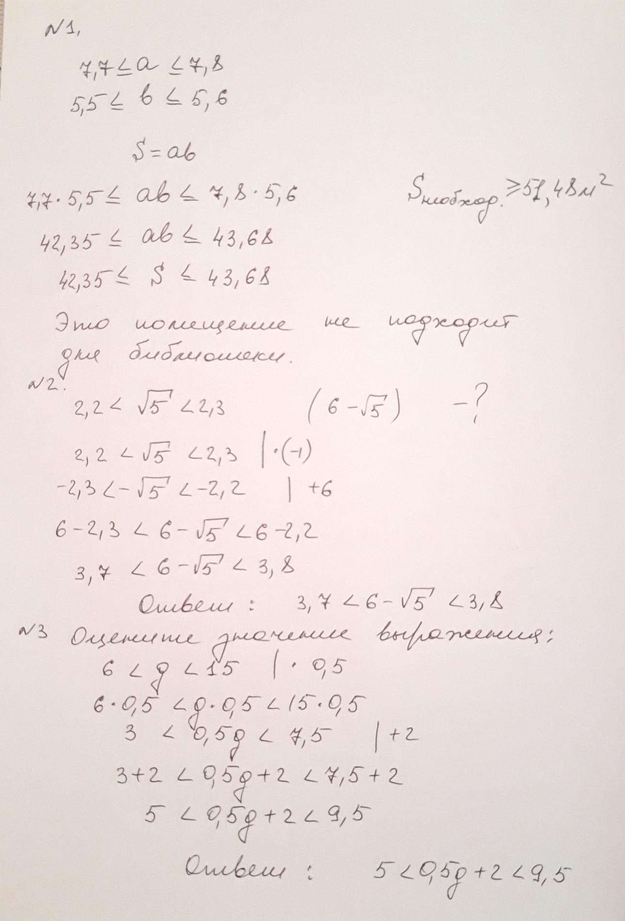 Помогите пожалуйста. 3 задания. Оценка площади прямоугольника, оценка разности, двойное неравенство (корень), оценка суммы (двойное неравенство).