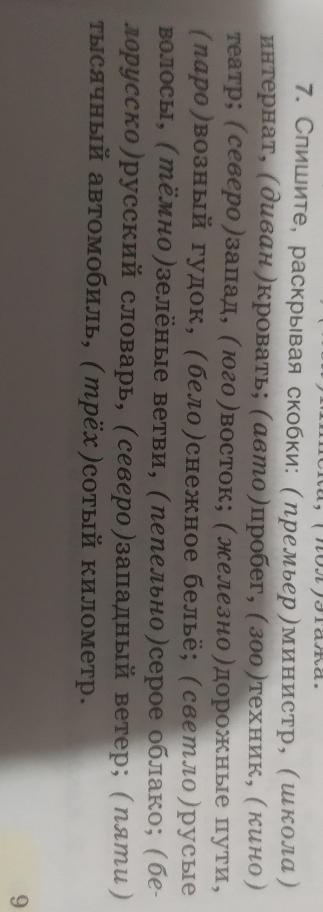 премьер министр , школа-интернат, диван-кровать, автопробег, зоотехник, кинотеатр, северо-запад, юго-восток, железнодорожные ... , паровозный , белоснежное, светло-русые, тёмно-зелёные, трёхсотый,пятитысячный, Северо-Западный, белорусскорусский, пепельно-серое