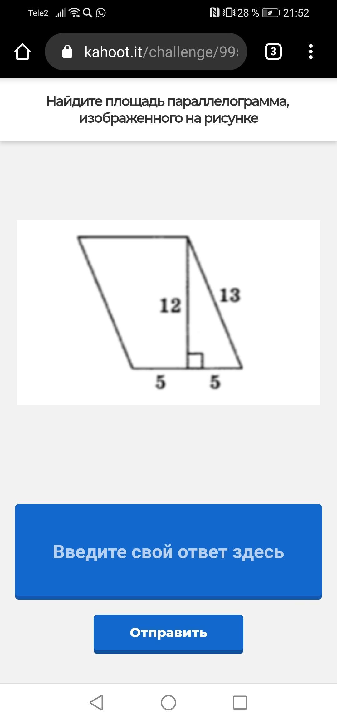 Объяснение: площадь параллелограмма вычисляется в данном случае по формуле: S=a×h, где h - высоты, а а - сторона к которой проведена высота. a=5+5=10