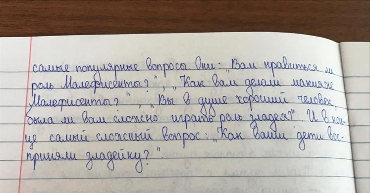 Сегодня я хотела бы взять интервью у Анжелины Джоли (Малефисента). Сейчас я буду задавать....