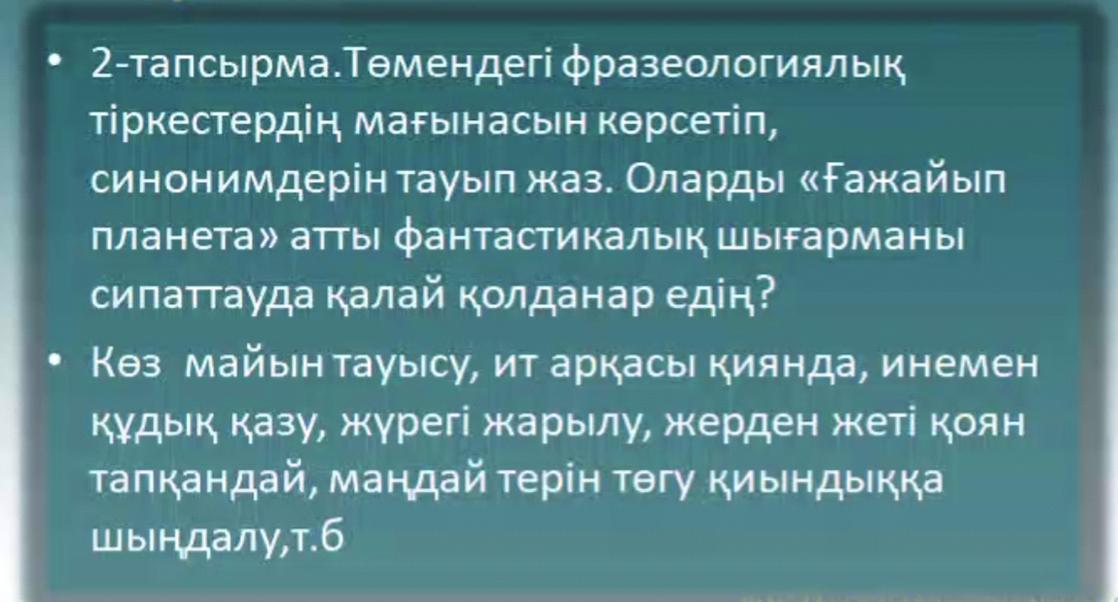 Ит арқасы қиянда-алысжер ,көз майын тауысу-көп оқу,инемен құдық қазу-қиын,еңбектену,маңдай терін төгу-еңбектену,жүрегі жарылу-шошу,қорқу,жерден жеті қоян тапқандай-қатты қуаны.