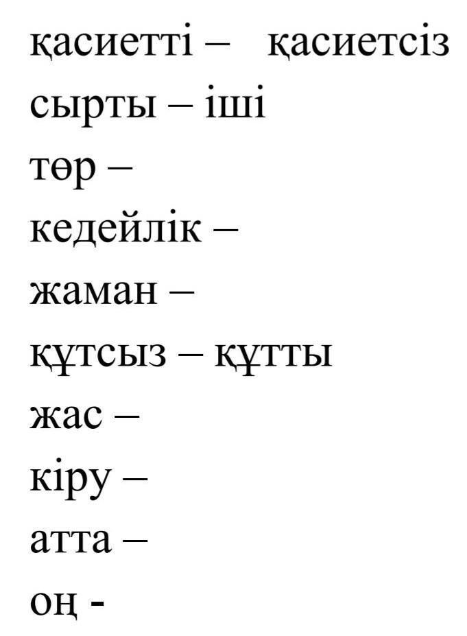 люди которые шарят в казахском помогите пожалуйста нужно подобрать к словам антонимы