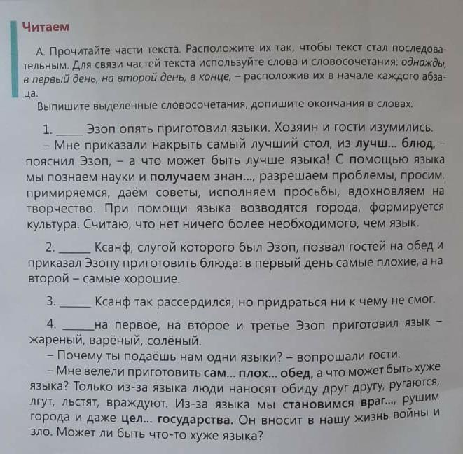 Прочитайте часть текста Расположите их так чтобы текст стал последовательным для связи частей текста Используйте слова и словосочетания Однажды первый день на второй день в конце расположение в начале каждого абзаца