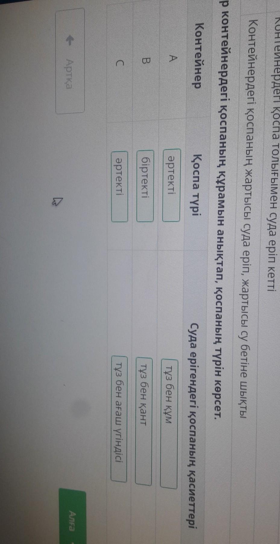 Әр контейнердегі қоспаның құрамын анықтап, қоспаның түрін көрсет.