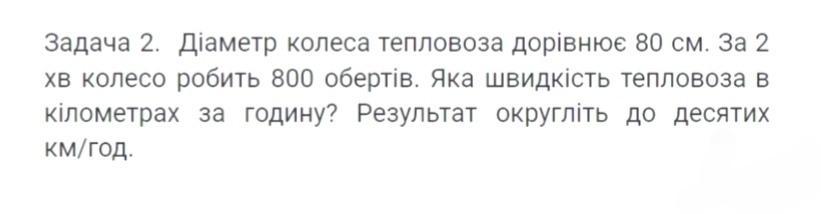 Колеса=80 п=251,2 см проезжает поезд за 1 оборот 251,2*800:100000=2,0096 км проезжает поезд за 2 минуты 2,0096:2=1,0048 км/мин 1,0048*60=60 км/час скорость поезда