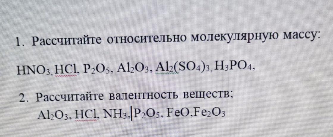 HNO3, HC1, P2O5, Al2o3, Al2(SO4)3, H3PO4,