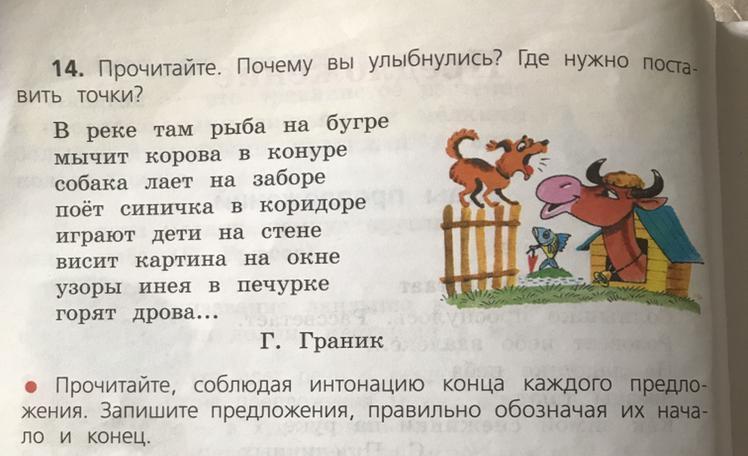 В реке "там рыба на бугре"мычит корова.В конуре собака лает на заборе.Поёт синичка. В коридоре играют дети.На стене висит картина.На окне узоры инея.В печурке горят дрова.