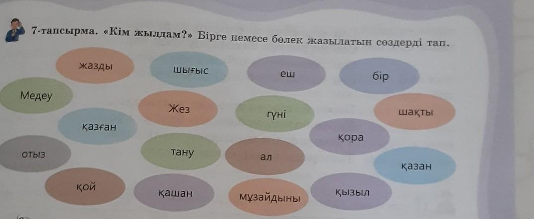 Ответ: ешбір, Медеу мұзайдыны, бірқазан, ешқашан, жезқазған