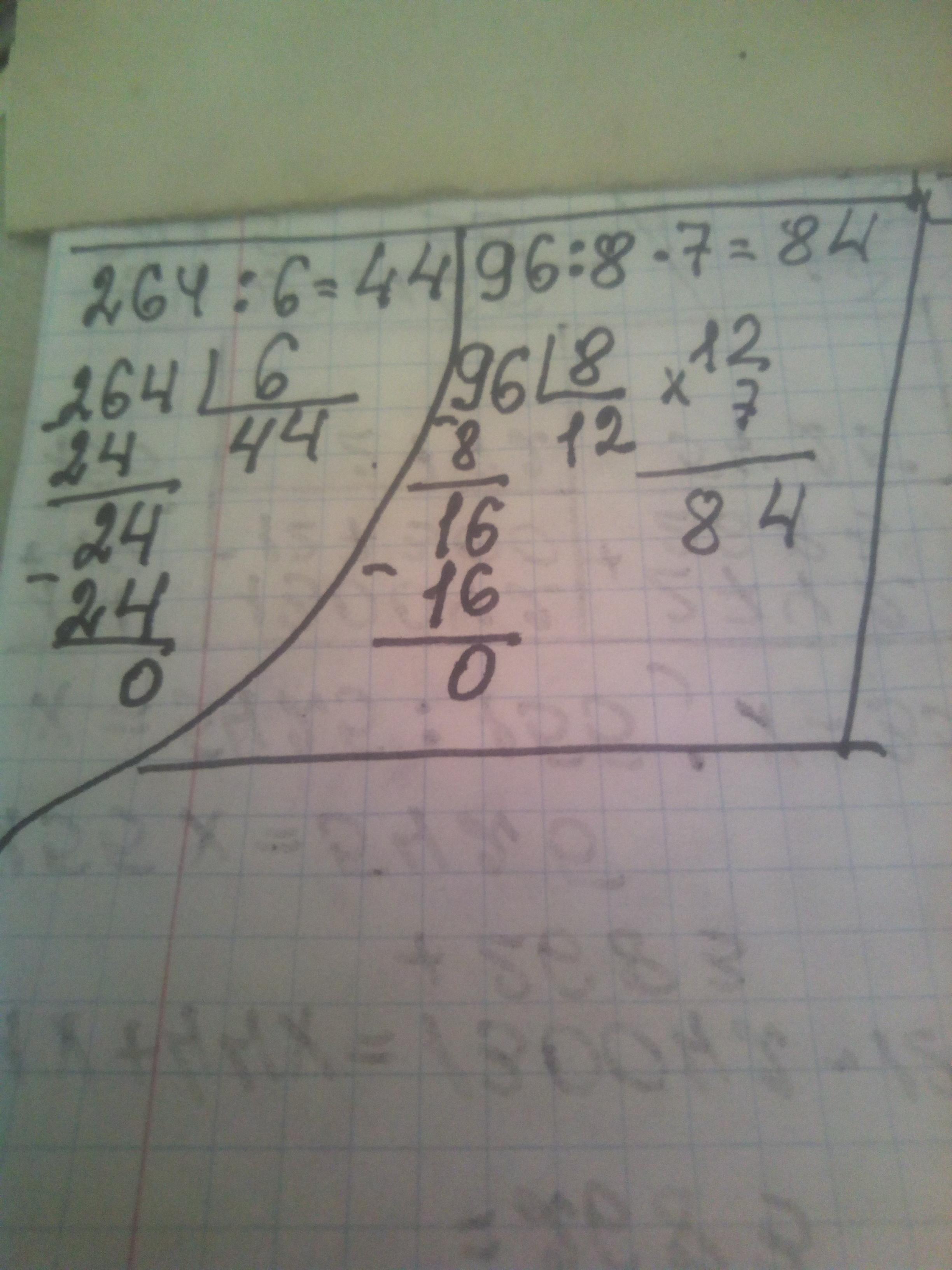 Помогити срочно! Здесь поделить уголком: 264:6=? ИМЕННО уголком, а не просто решение. Здесь ПРОСТО Дать ответ, но разобрано: 96:8*7=? Дам баллы…