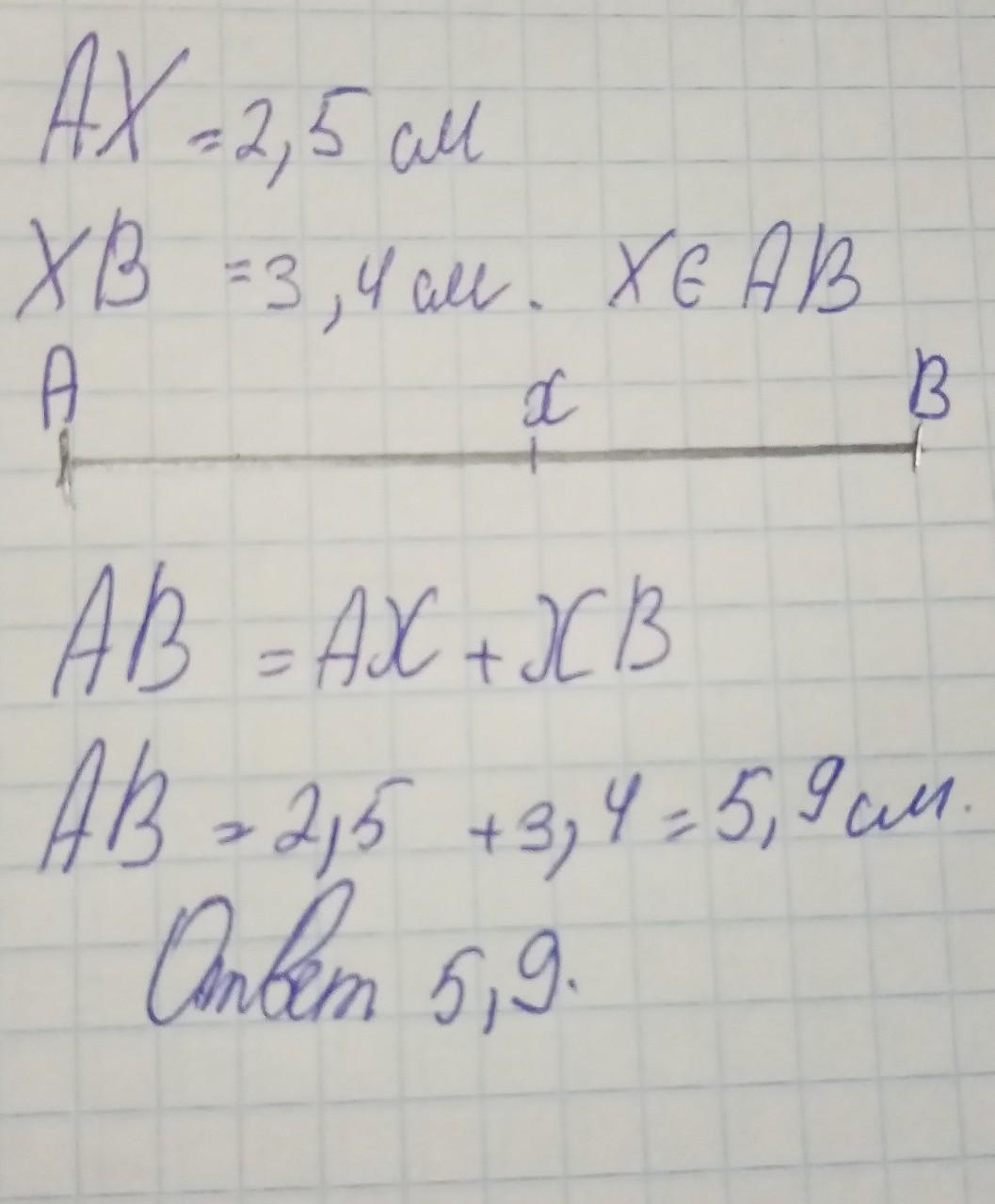 АВ=2,5+3,4=5,9 см