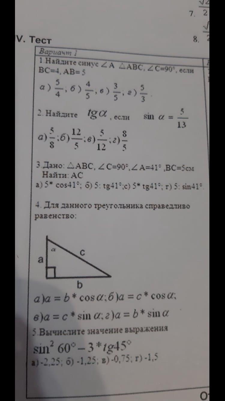 1) Б так как синус это отношение противолежащего катета к гипотенузе. Остальное хз:) в троллейбусе еду просто пхахахах
