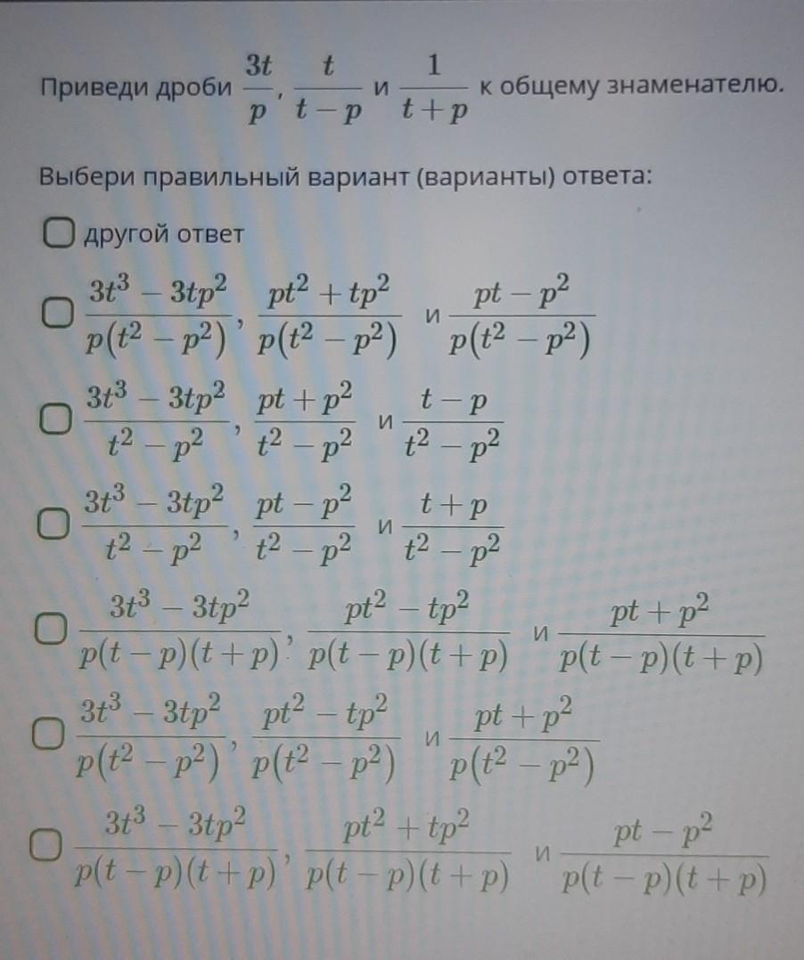Приведите дроби к общему знаменателю. помогите пожалуйста, кто разбирается. С меня 10 баллов.