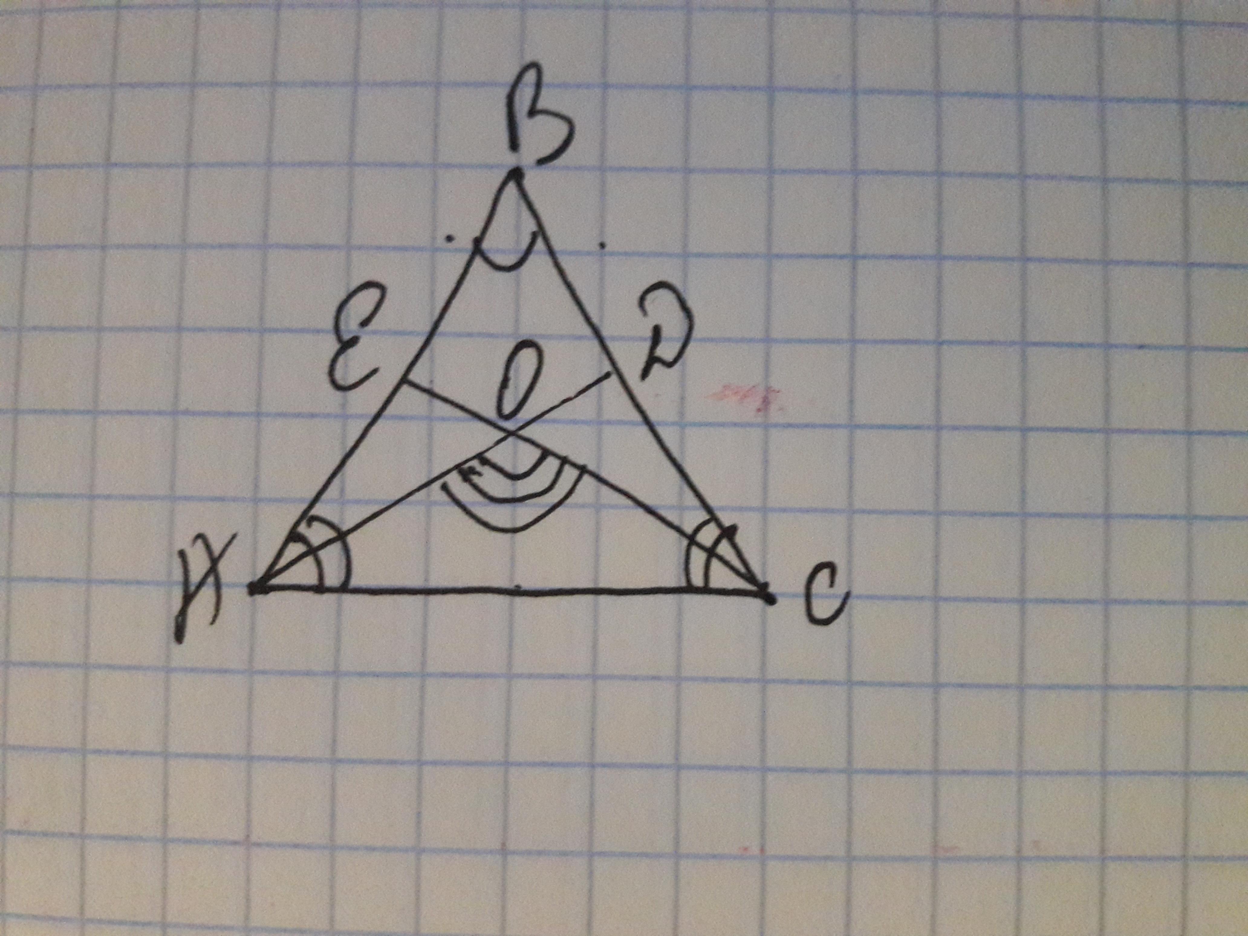 Проедем биссектрисы АD и СЕ, пересекающиеся в (·)О.