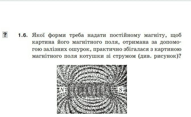 якої форми треба надати постійному магніту,щоб картина його магнітного поля отримана за допомогою залізних ошурок практично зберігалась з картиною магнітного поля котушки зі струмом