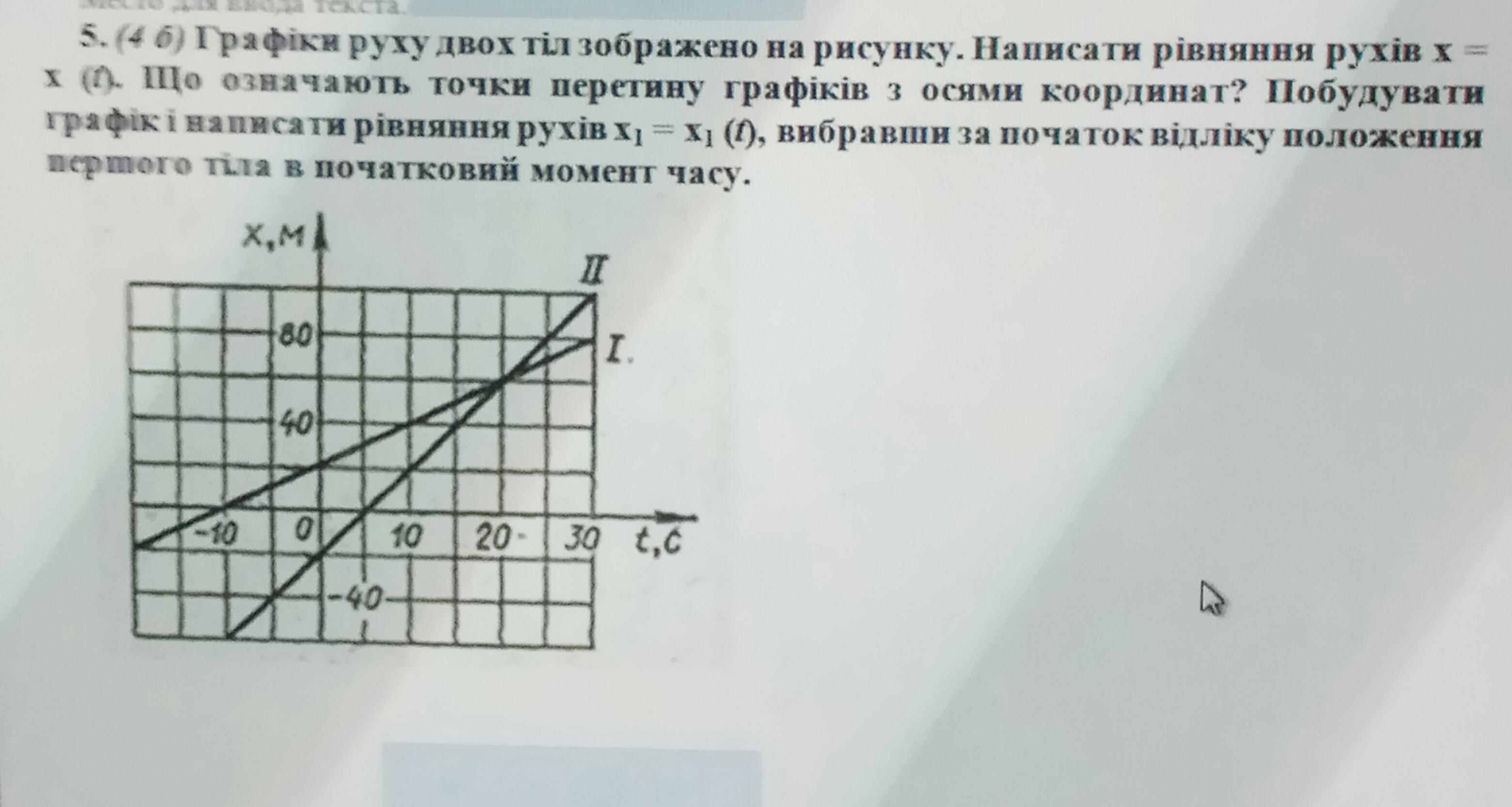 Графики движения двух тел изображено на рисунке. Написать уравнение движений x=x(t). Построить график и написать уравнение движений x1=x1(t), выбрав за начало отсчёта положение первого тела в начальный момент времени. Прошу очень сделать вторую половину задания, где нужно начертить график и написать уравнение x1= x1(t).
