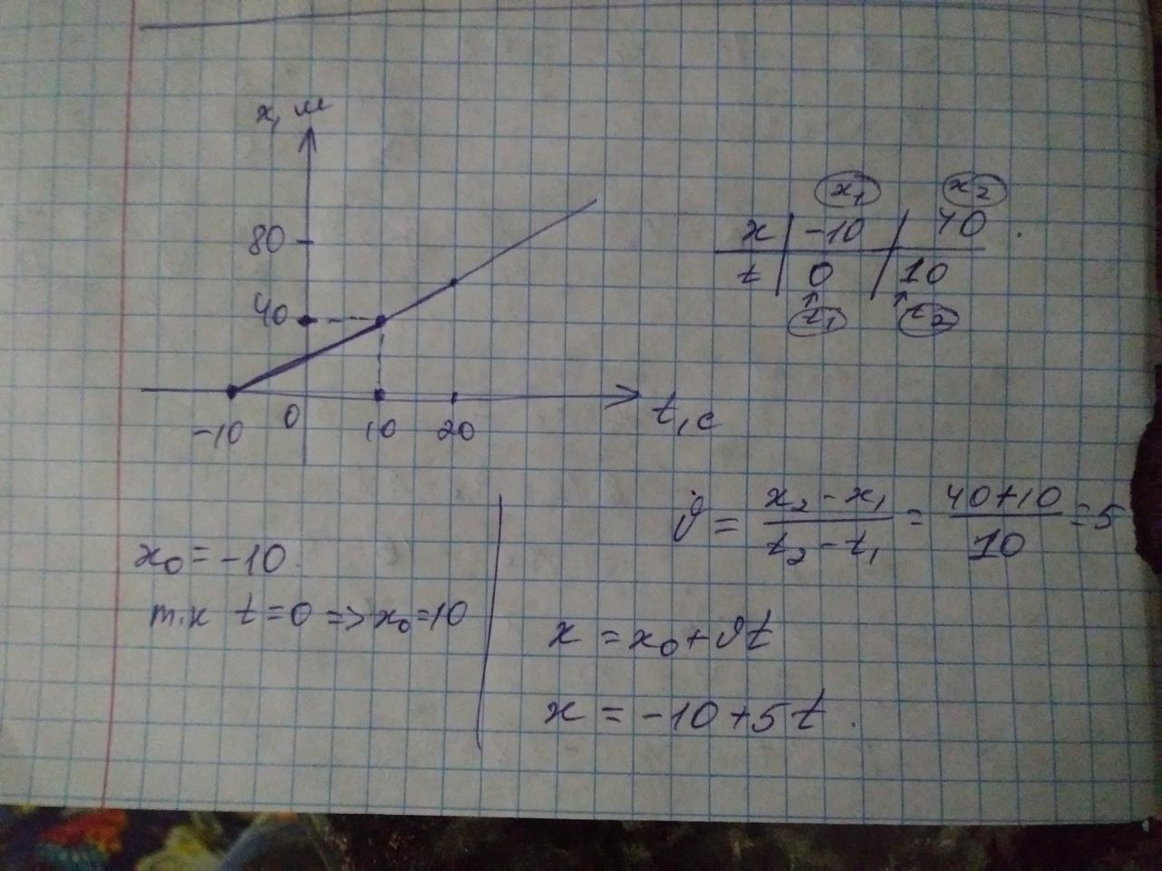 при начальном моменте времени ( t0=0) начало будет (х0=-10) и дальше по фото