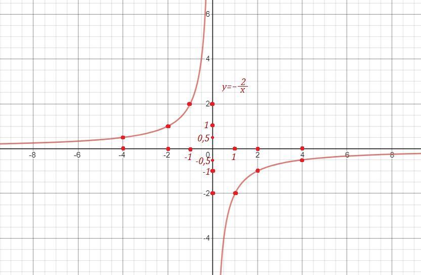 Графиком функции является гипербола, ветви которой расположены во 2 и 4 четвертях , так как