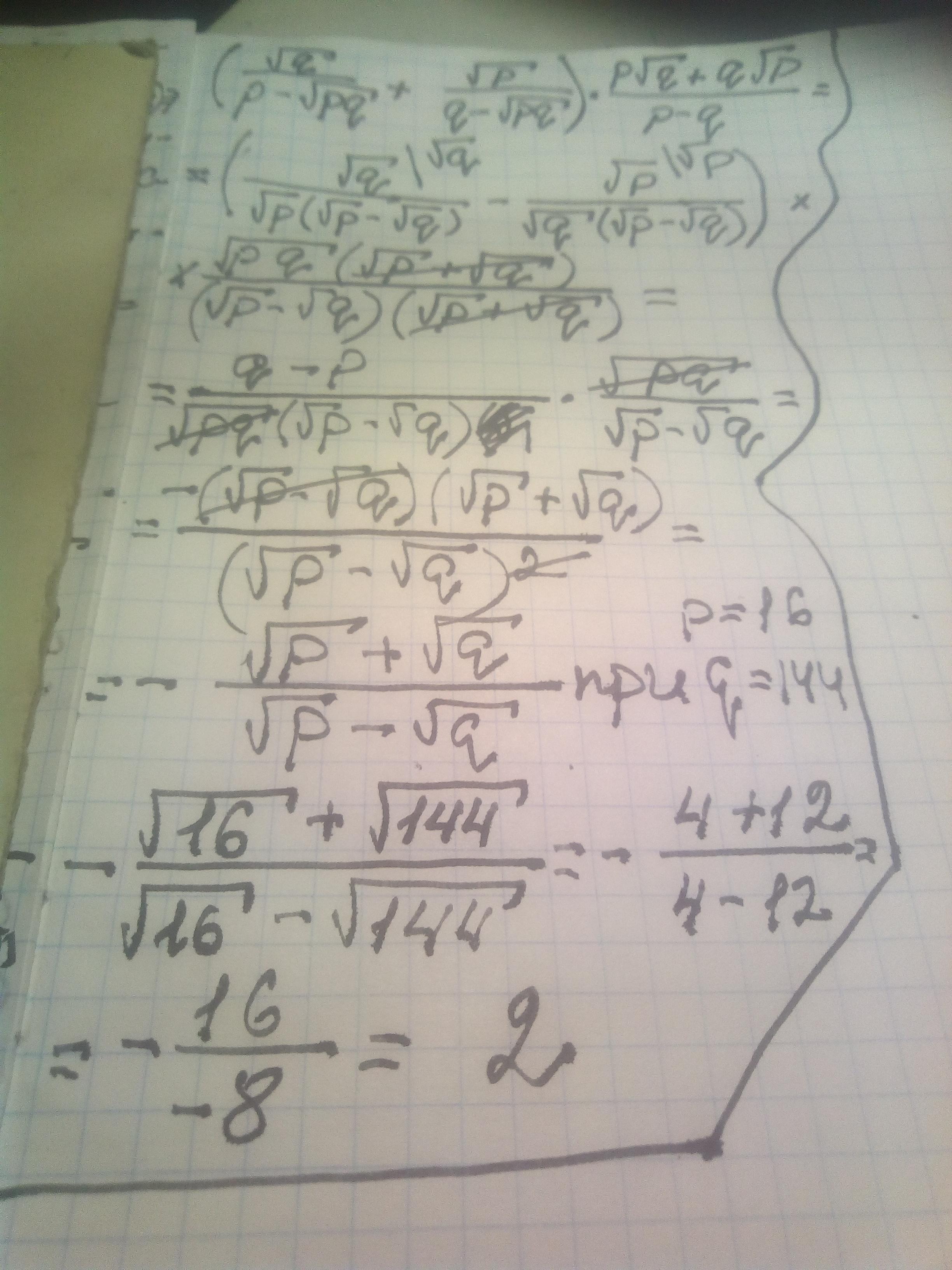 (√q/p-√pq + √p/q-√pq)* p√q+q√p/p-q Если p = 16; q = 144.