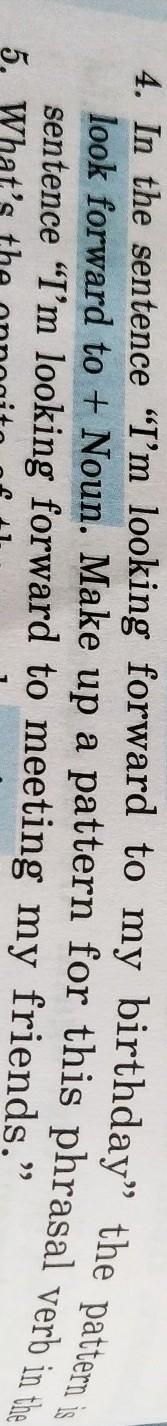 4. In the sentence "I'm looking forward to my birthday, the pattern is