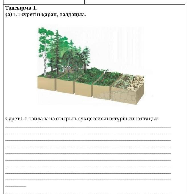 Обяснение: Экологиялық сукцессия бірнеше кезеңдерден өтеді, солардың барысында биоталық қауымдастықтар бірінен соң бірі алмасып жатады. Экологиялық сукцессия кезінде түрлер алмасуының себебі, популяциялар қоршаған ортаны өзгерте отырып, өзге популяция үшін қолайлы жағдайлар жасайды. Мұндай жағдай жүйенің биоталық және абиоталық құрауыштарының арасында тепе-теңдік орнағанша жалғаса береді.