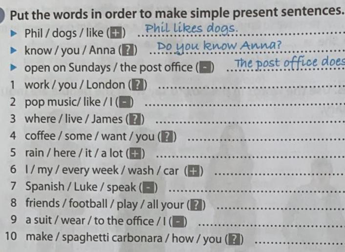 put the words in order to make simple present sentence