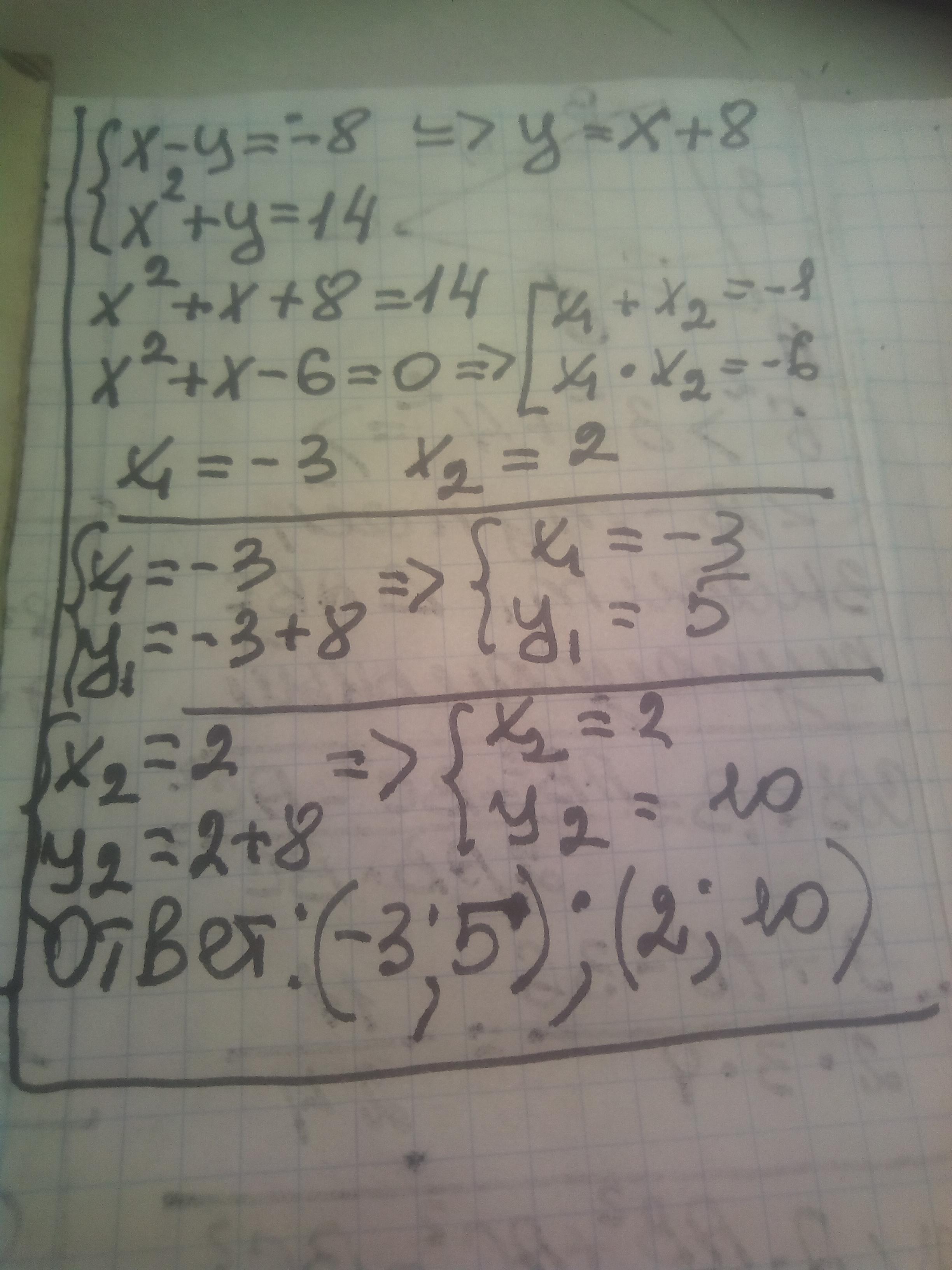 Откуда получаем решения (2,10) и (-3,5)