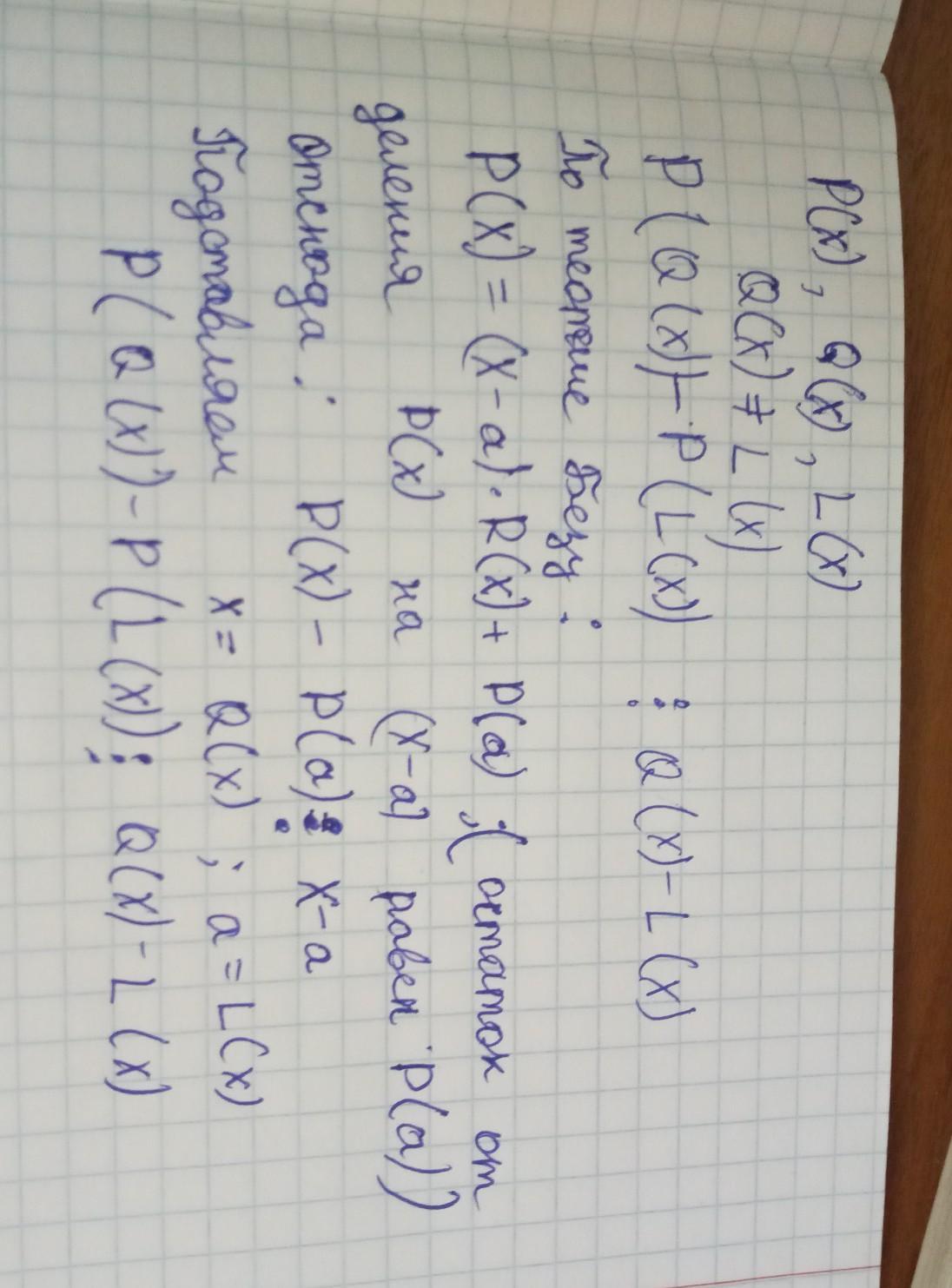 Есть 3 многочлена. Пусть P(x), Q(x), L(x). Q(x) не равен L(x). требуется доказать, что P(Q(x))-P(L(x)) делится на Q(x)-L(x).