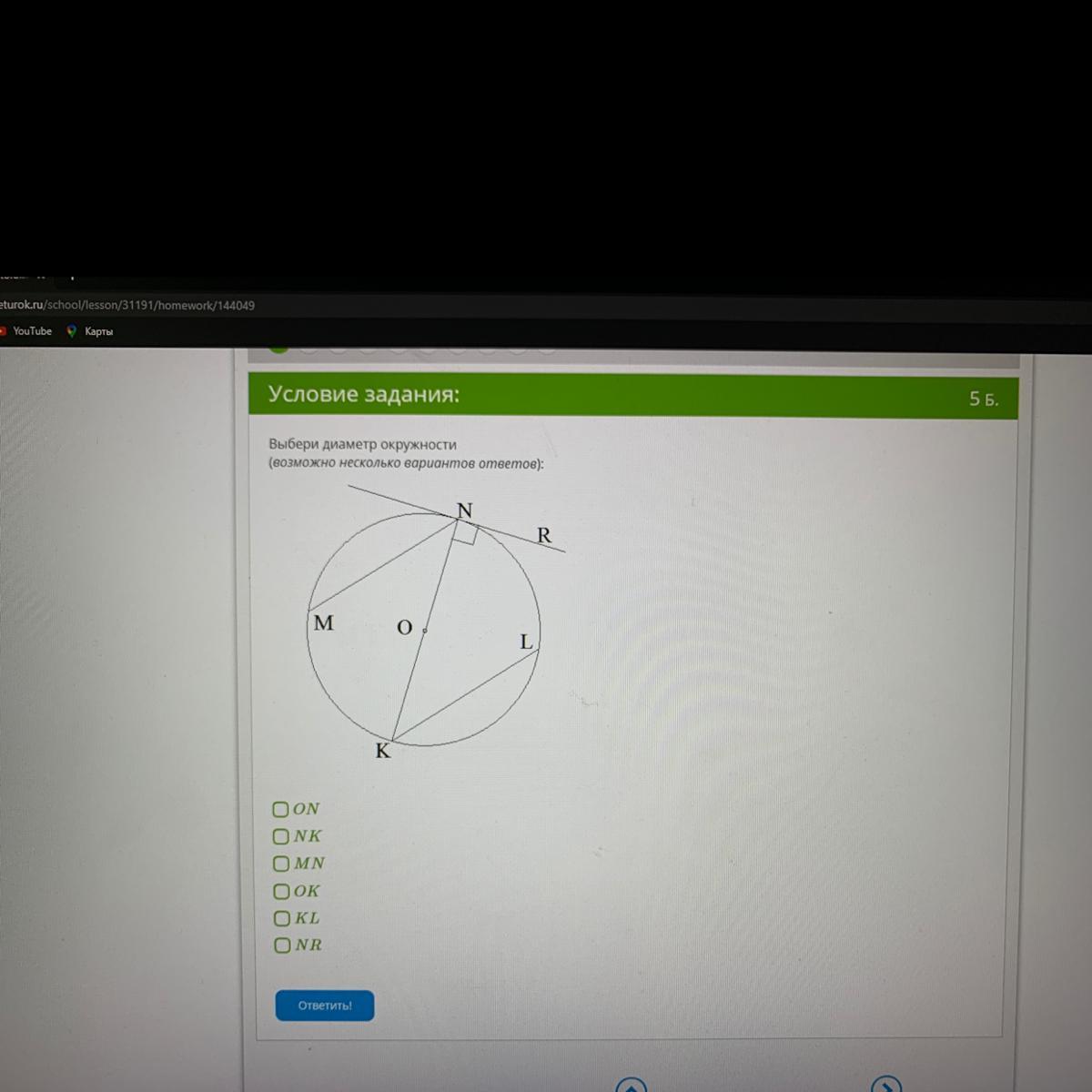 если повести линию из точки М в точку L то получется диаграма идущая через центр (точка О) , такаяже как NK