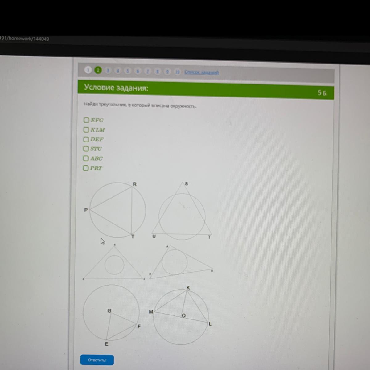 Треугольник АВС является треугольником, в который вписана окружность, поскольку окружность касается каждой из сторон треугольника АВС.