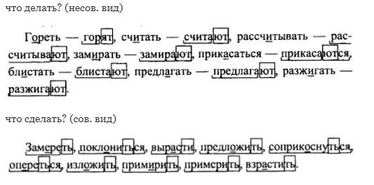 Г..реть, сч..тать, рассч..тать, зам..реть, зам..рать, прик..саться,