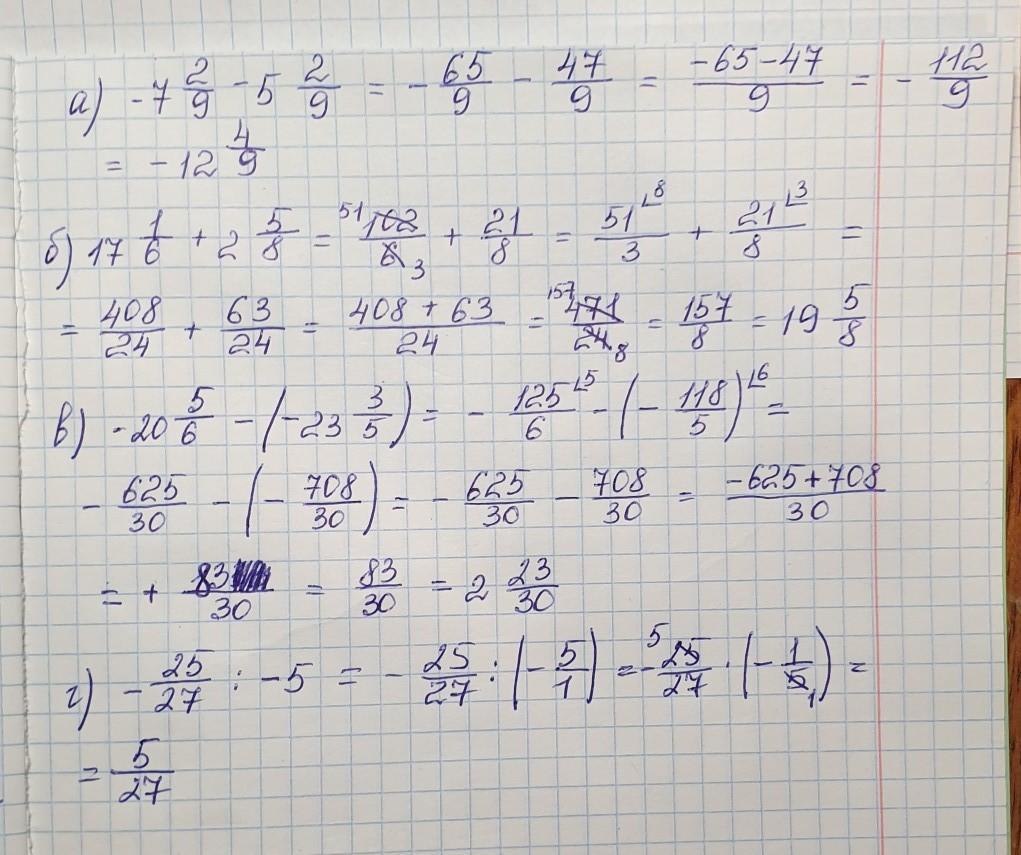 a)-12 4/9 б) 19 23/30 в) 83/30 г) 5/27