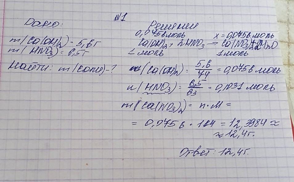 m(Ca (NO3) 2) =0.075 * 164 =12.3 грамм