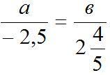 \frac{a}{-2,5}=\frac{b}{2,8} \Rightarrow 2,8a=-2,5b  \Rightarrow \frac{a}{b}=\frac{-2,5}{2,8}=-\frac{25}{28}