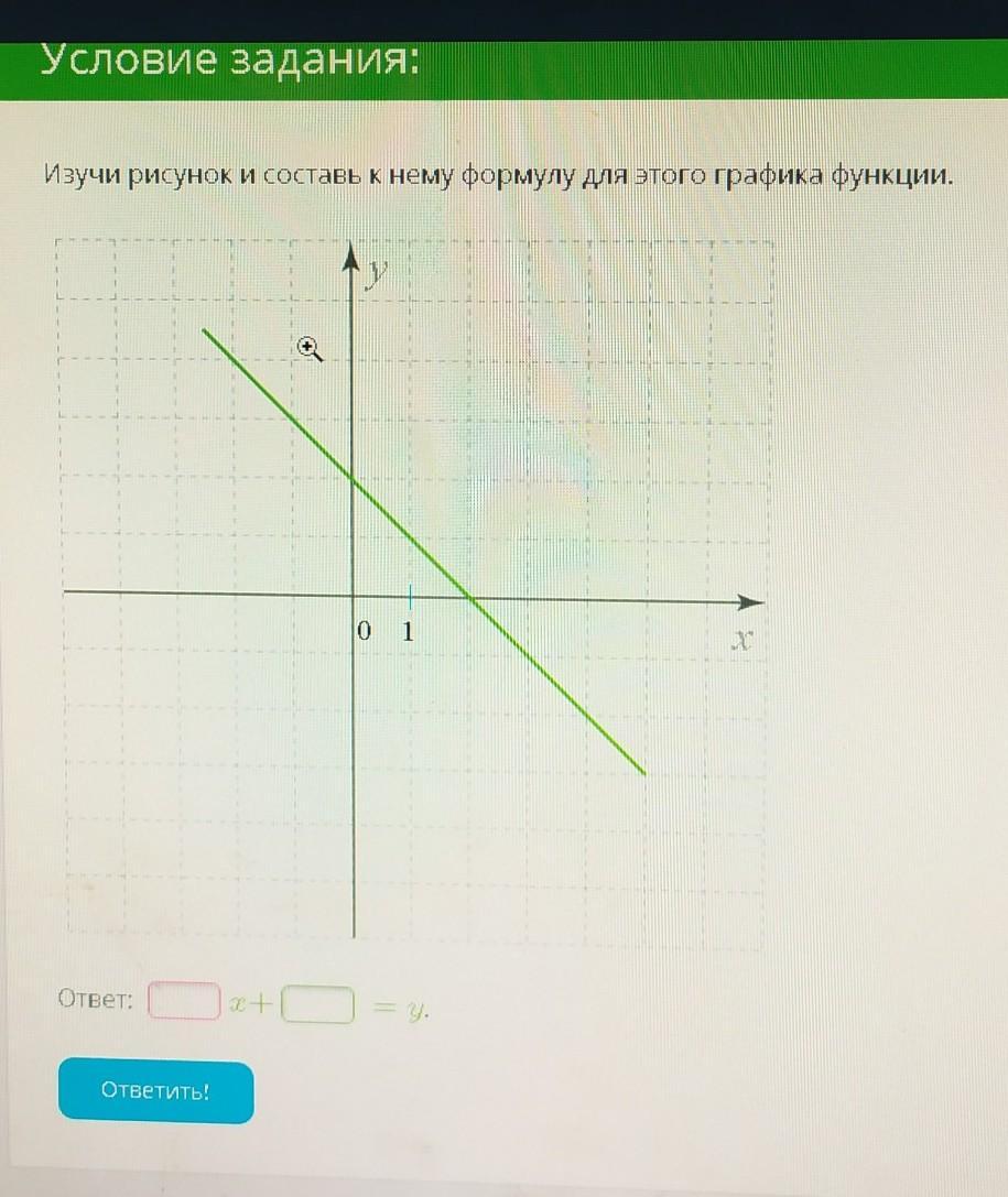 график функции линейный, монотонно убывающий, смещен вверх на 2 единицы и вправо тоже на две единицы