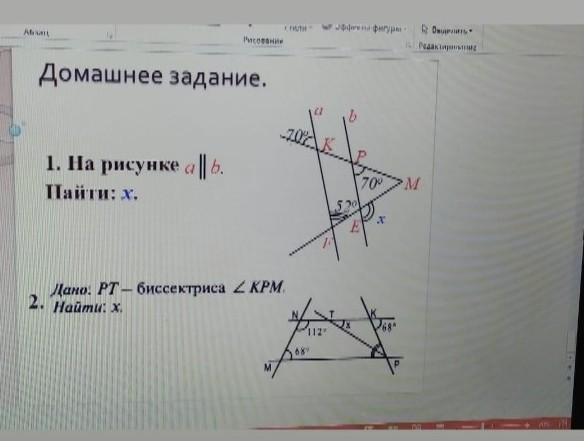 2) Угол KPM=68*, как накрест лежащие. Биссектриса разделила этот угол на две равные части ∠KPT=∠MPT=34*.