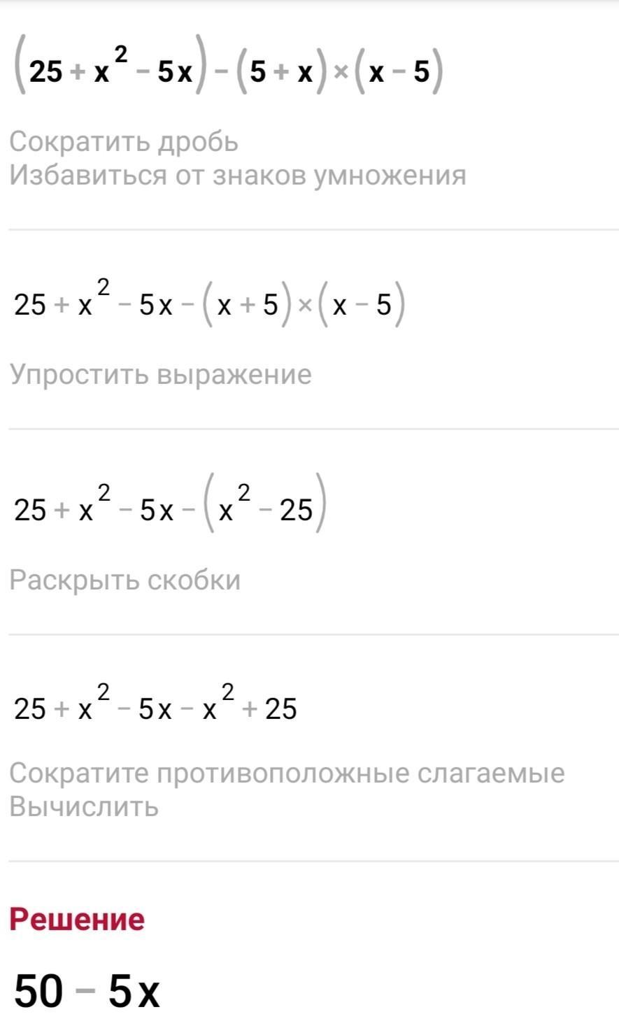 50 - 5x = 50 - 5 * (- 1,5) = 50 + 7,5 = 57,5