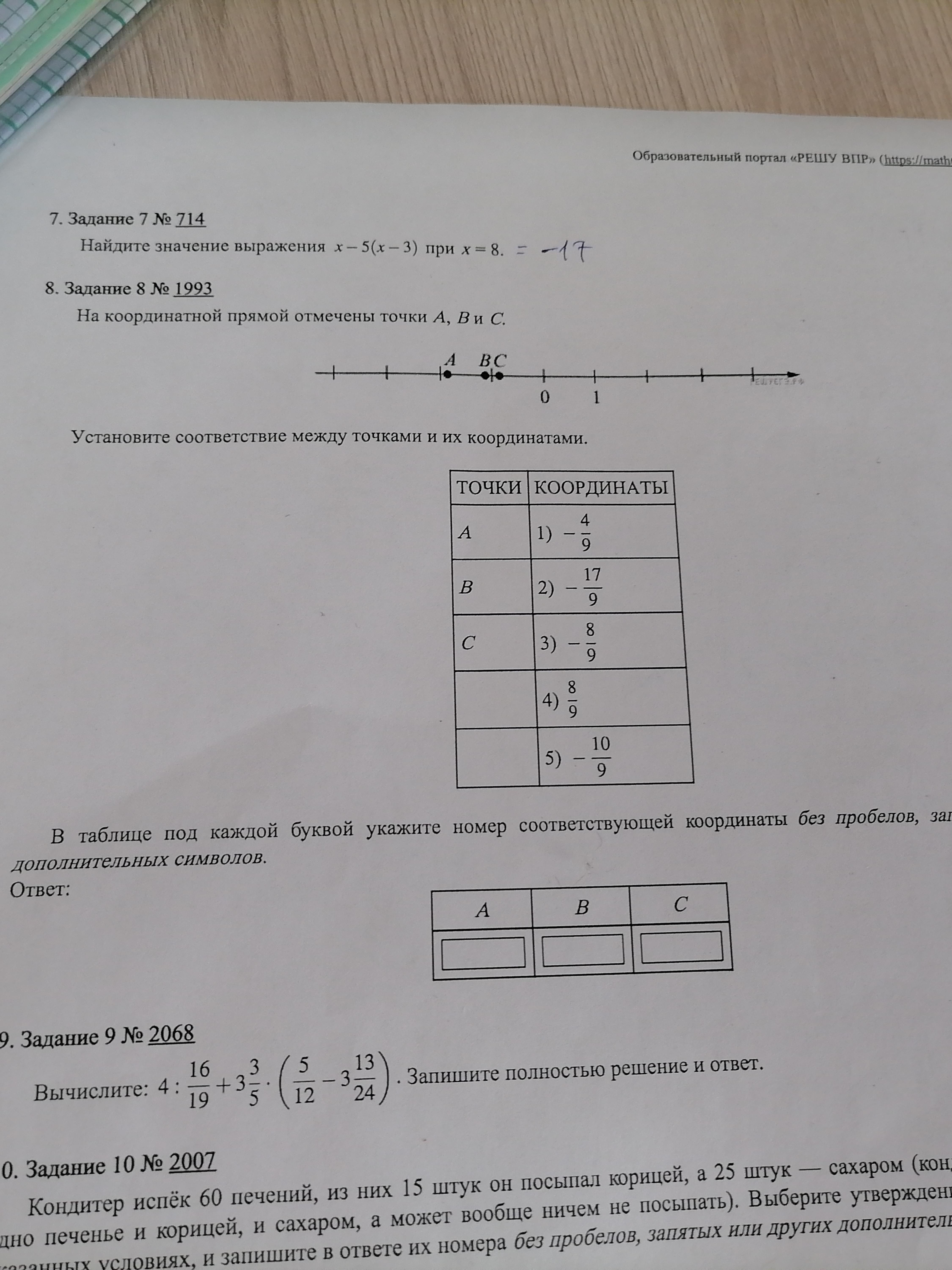 8) А - 2 (т. К. Точка А находится ближе к - 2 и - 17/9 так же примерно равно - 2)