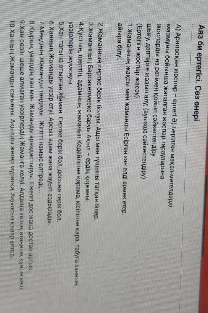А) Араласқан жоспар – ертегі Ә) Берілген мақал-мәтелдерді