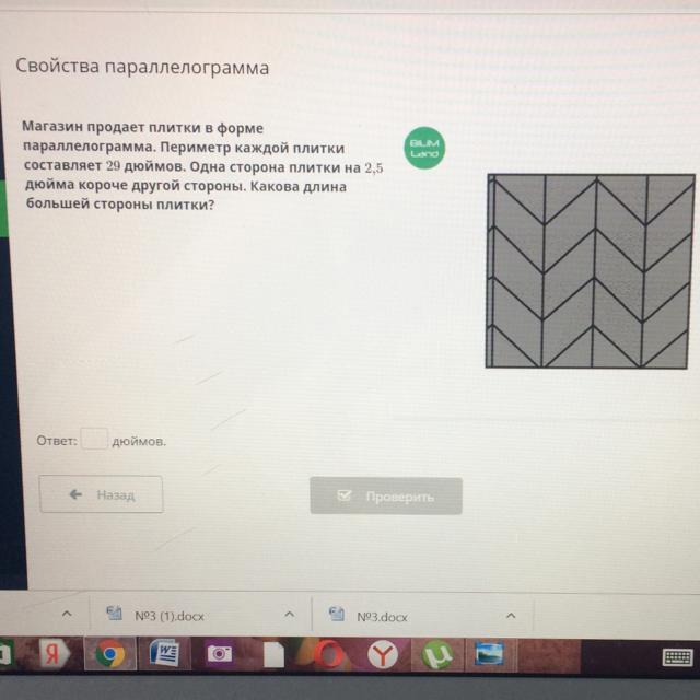 Пусть х будет большая сторона плитки, тогда (х-2,5) вторая сторона плитки.