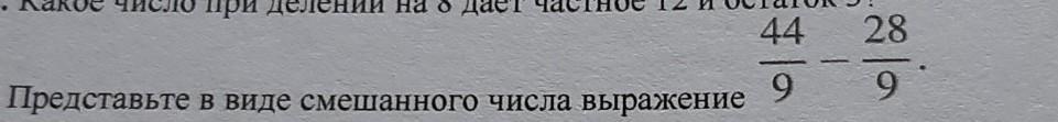 Представьте в виде смешанного числа вырвжения 44/9-28/9