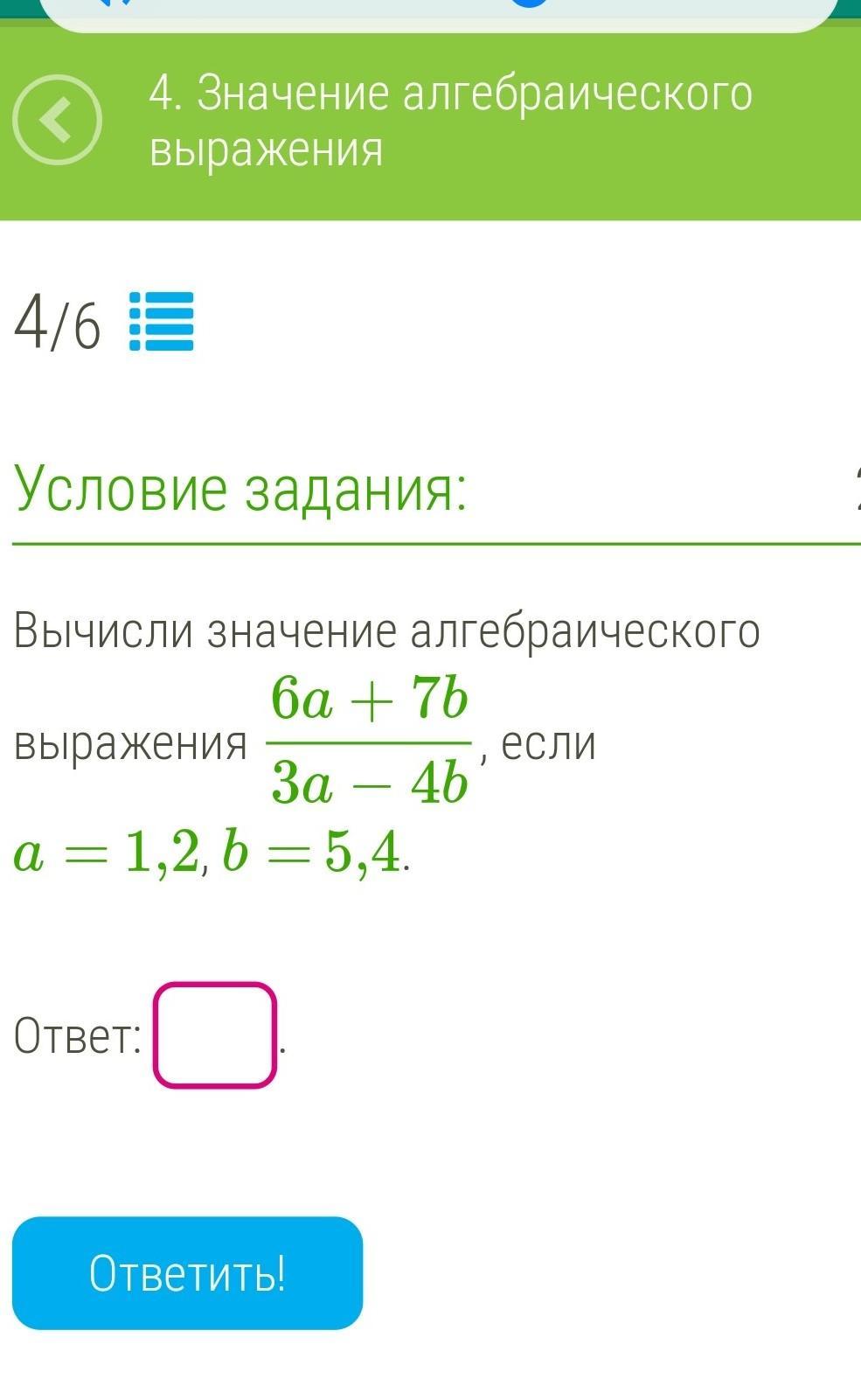 Объяснение: 6а+7b:3a-4b=6×1,2+7×5,4=7,2+37,8:3,6-21,6=45:18=2,5