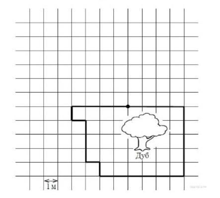 учёный кот обошёл вокруг дуба и вернулся в исходную точку. на рисунке показан путь кота вокруг дуба. сторона квадратной клетки ровна 1 м. найди длину пути учёного кота ответ дайте в метрах.