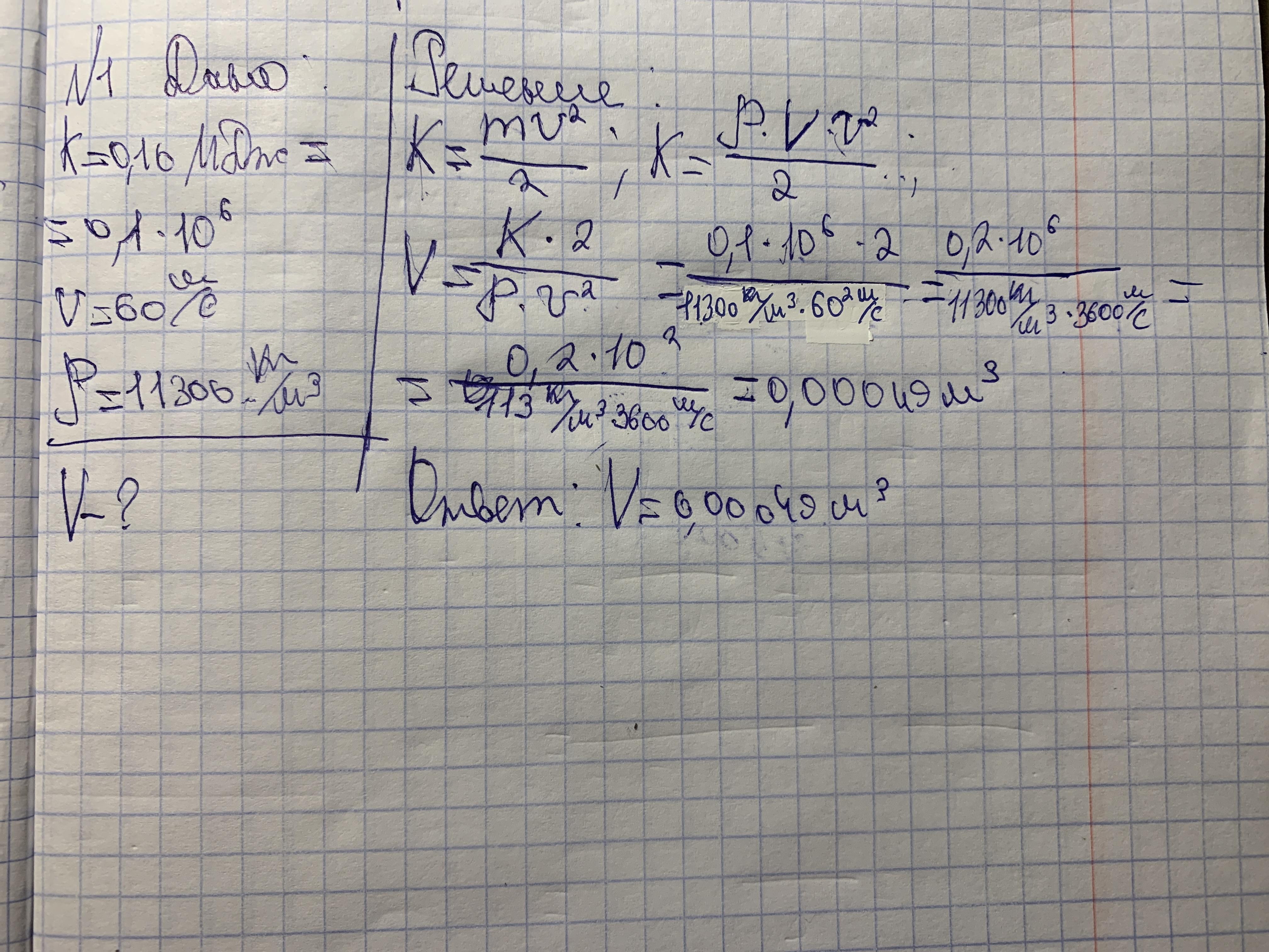 средняя кинетическая энергия всех молекул кислорода содержащихся в одном кубическом метре при комнатной температуре, <к>=0.10мдж.определите какой объем должно иметь свинцовое ядро летящее со скоростью 60 м/с чтобы обладать такой же кинетической энергией. плотность свинца 10н/кг
