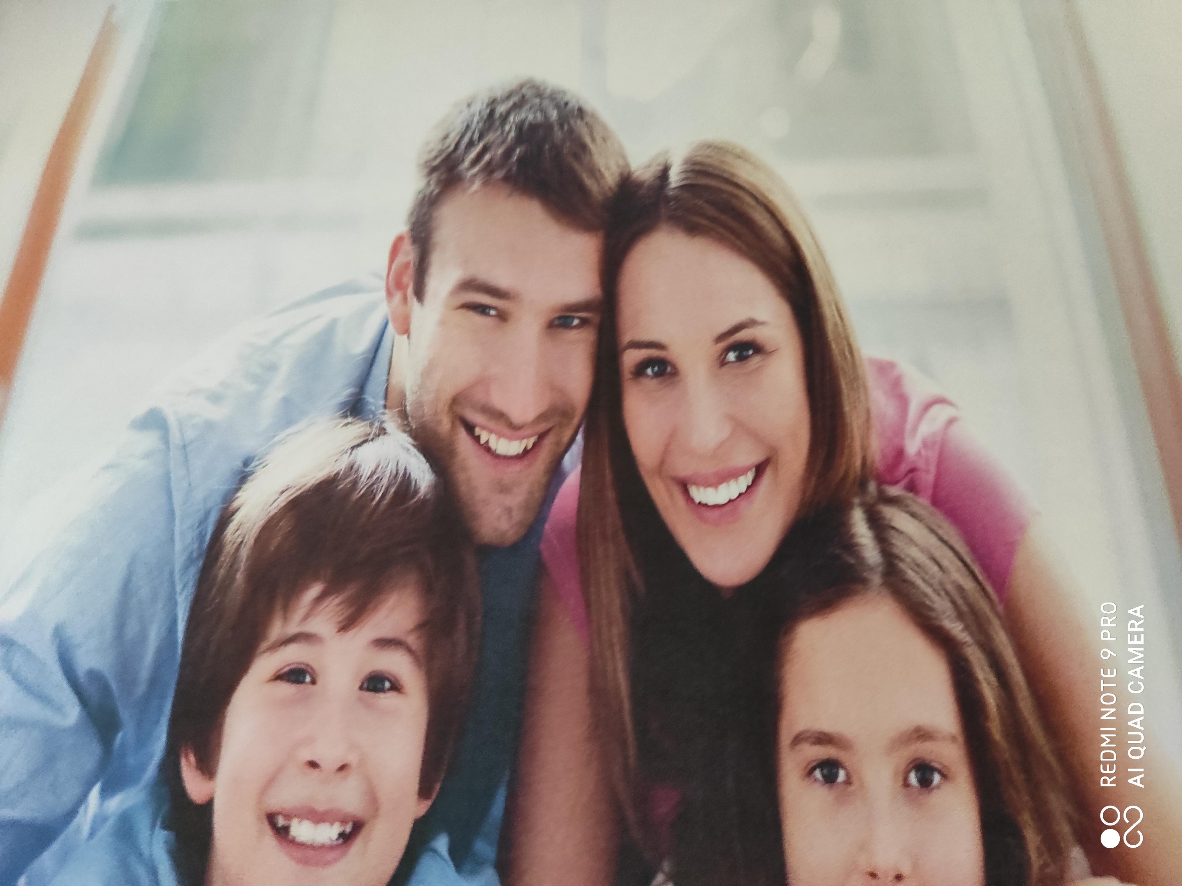 she have got a dark long hair, brown eyes , small nose and big smile.
