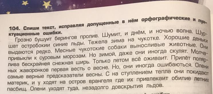Грозно бушует Берингов пролив. Шумит и днём, и ночью волна. Шуршат остробокие синие льды. Тяжела зима на Чукотке. Хорошие деньки выдаются редко. Местные чукотские собаки — выносливые животные. Они привыкли к суровым морозам. Но зимой даже они иногда скулят. Молчалива бескрайняя снежная ширь. Только летом всё оживает. Прилёт полярных жаворонков — первая весть о весне. Но они иногда ошибаются. Олени — самые верные предсказатели весны. С наступлением тепла они покидают материк и уходят на остров Врангеля, где их привлекает обилие летних пастбищ. Олени уходят туда незадолго до вскрытия льдов.