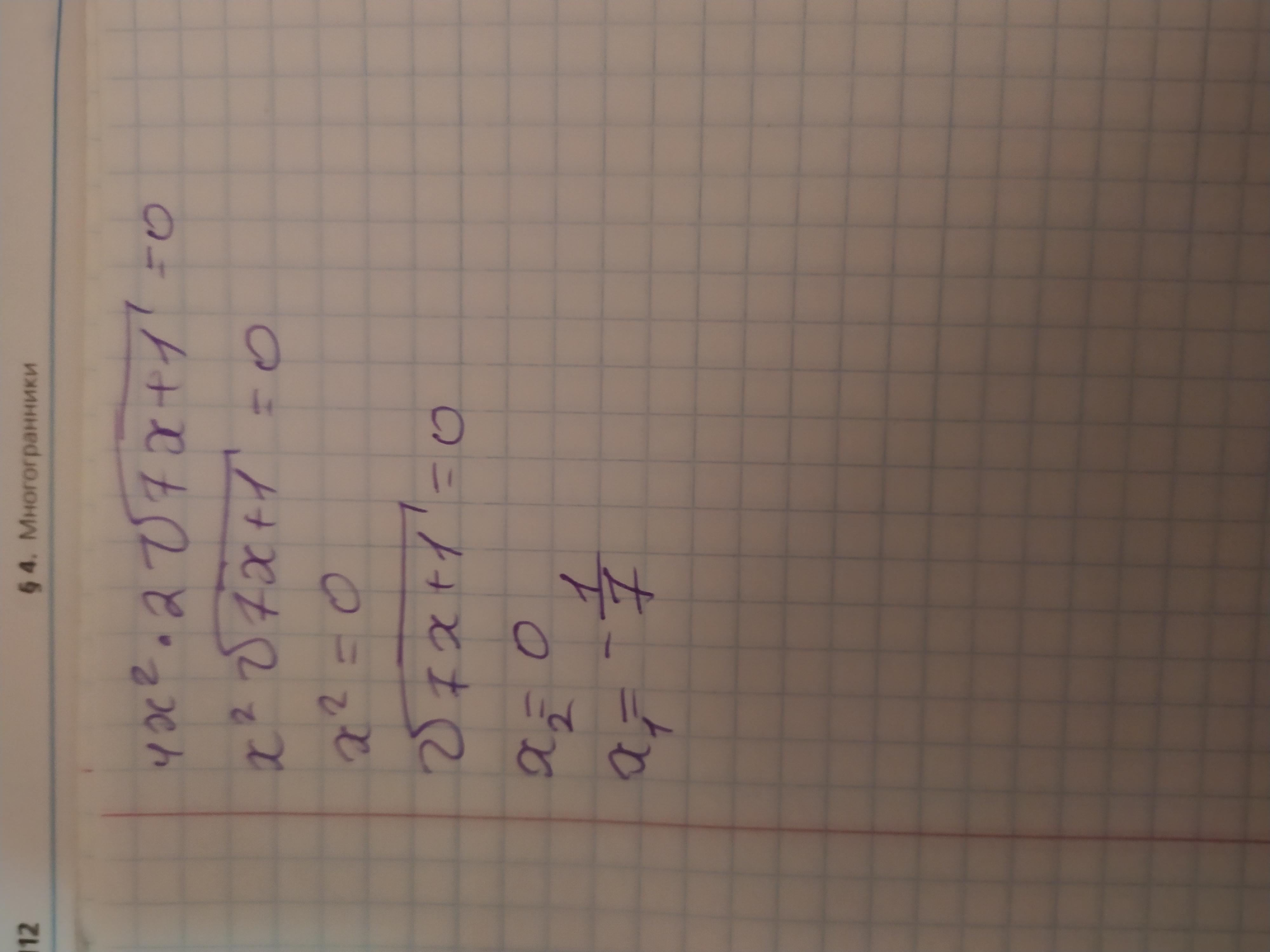Ответ:x2=0; x1=-1÷7