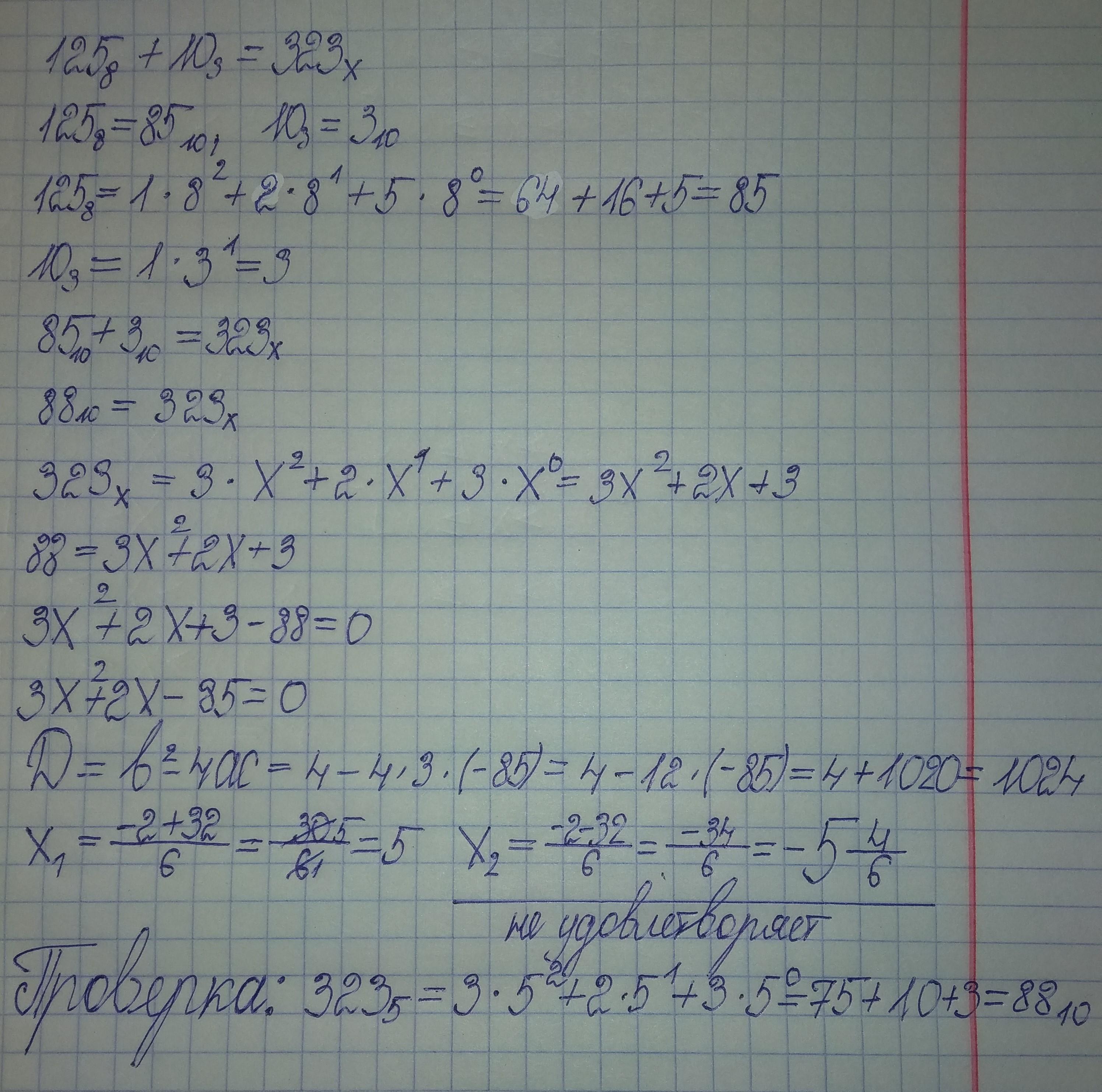 для начала необходимо перевести числа в десятичную степень, а затем составить квадратное уравнение