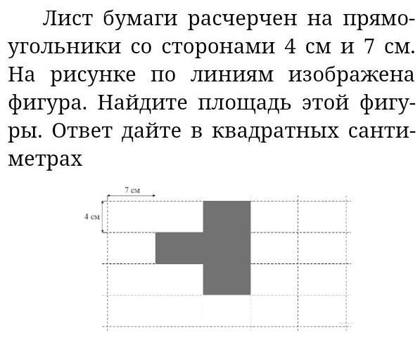 на рисунке фигура состоит из 4 таких прямоугольников,тогда площадь этой фигуры 28*4=112см²